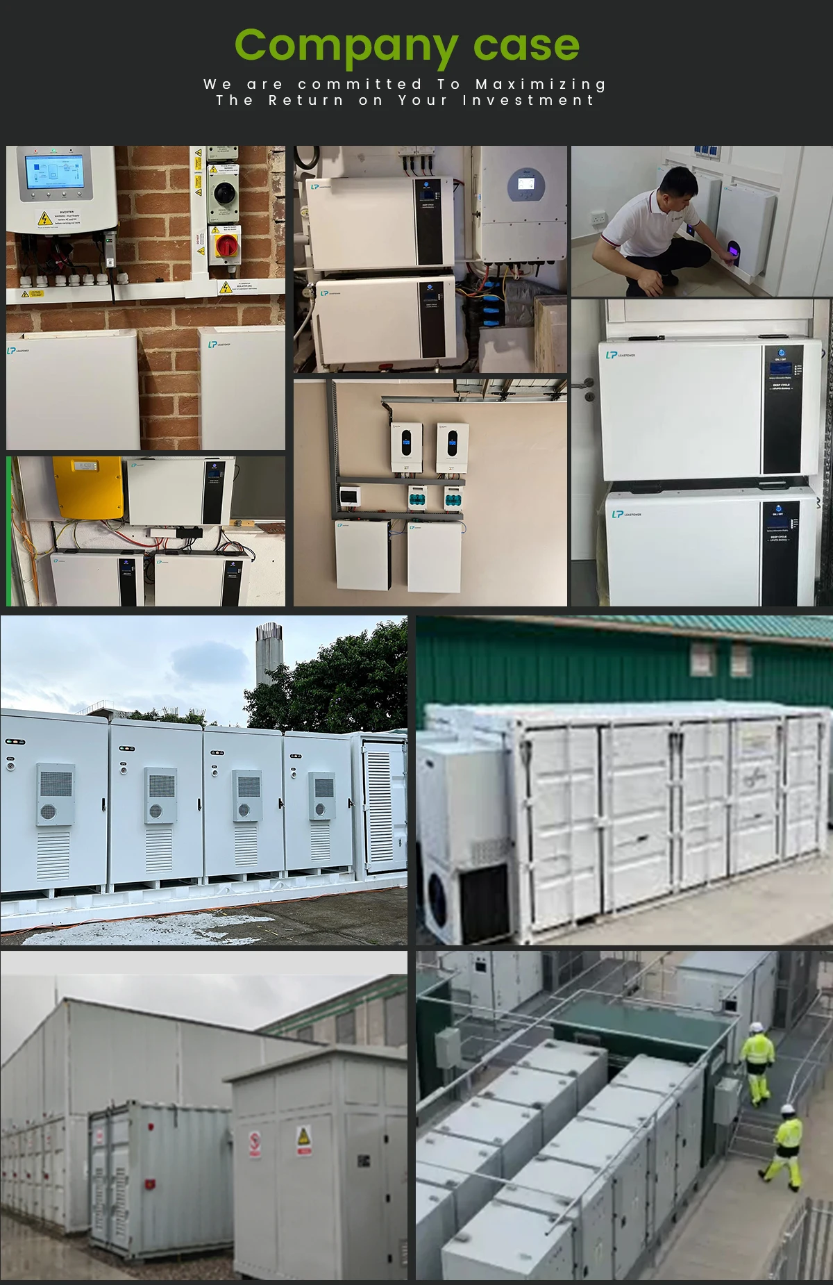 corrente.O modo independente de P&D e produção elimina intermediários, reduz custos e garante a máxima qualidade. O controle modular avançado e o gerenciamento térmico da LEAD POWER fornecem proteção para baterias e sistemas de armazenamento de energia.Da formulação precisa do material à fabricação fina, cada etapa prolonga a vida útil da bateria e aumenta a estabilidade do sistema.O resultado final é uma linha de produtos de desempenho altamente compatível, fácil de instalar e confiável.Através da nossa estratégia de asa dupla, tornamos a energia limpa acessível e eliminamos desafios de poder. O poder principal não é apenas um fornecedor de soluções de energia, mas também um construtor de um futuro verde.