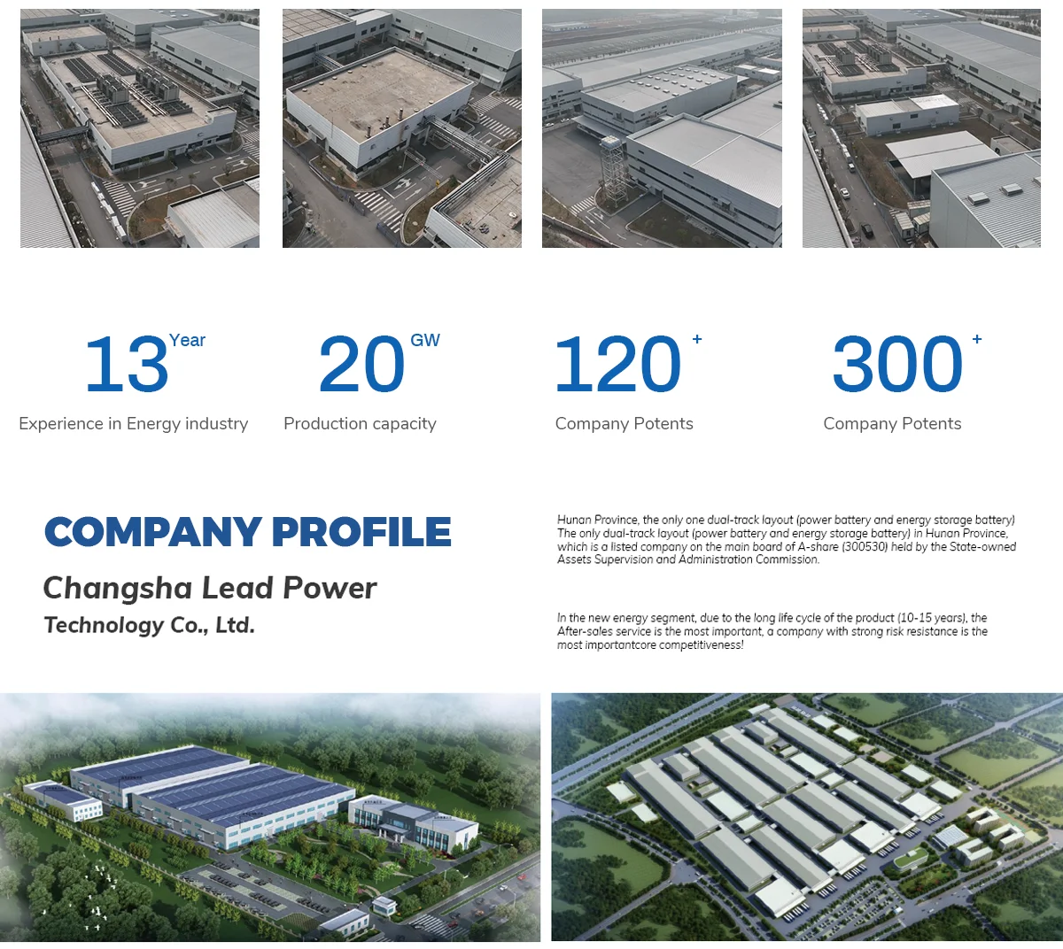 força apoiada pelo governo chinês, construímos um layout de cadeia industrial completo em baterias de energia e baterias de armazenamento de energia com mais de 470000 metros quadrados de espaço de produção, capacidade de produção de 20GWh.Fabricação inteligente, armazenamento inteligente e transporte AGV inteligente.Formando um sistema de controle de gerenciamento visual 3D, garantindo uma taxa de automação de 98%.O Lead Power é um profissional envolvido na pesquisa, desenvolvimento, venda e serviço de células de lítio, baterias residenciais, sistemas de baterias comerciais e industriais.Contamos com uma equipe de pesquisa e desenvolvimento de mais de 100 PhDs enraizados em cinco grandes escolas experimentais.Desde materiais de bateria, baterias e módulos até integração completa do sistema, dominhamos a tecnologia principal de toda a cadeia industrial, obtivemos mais de 300 certificados de patentes e construímos uma vantagem tecnológica incomparável para toda a indústria