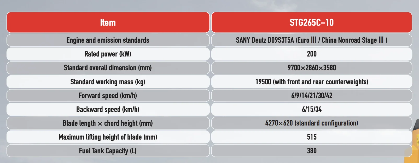 Engine Brand: SANY Deutz D09S3T5A